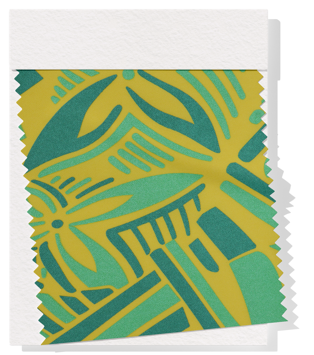 Our stretch polyester is a synthetic knitted fabric. This knitted stretch polyester has a 30% 1 way horizontal stretch giving the fabric unparalleled comfort. 150cm wide and 220 gsm, our stretch polyester pacific prints are perfect for dresses and 2 pieces.