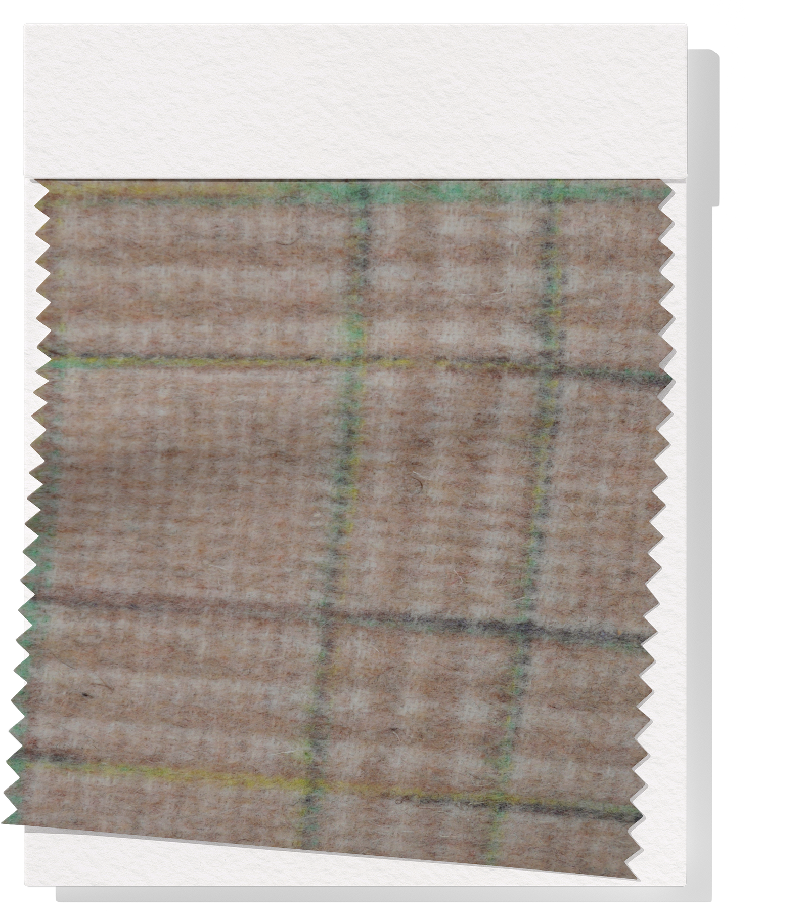 Soft beige with subtle sage green and yellow lines. The reverse side features a bush pink colour.